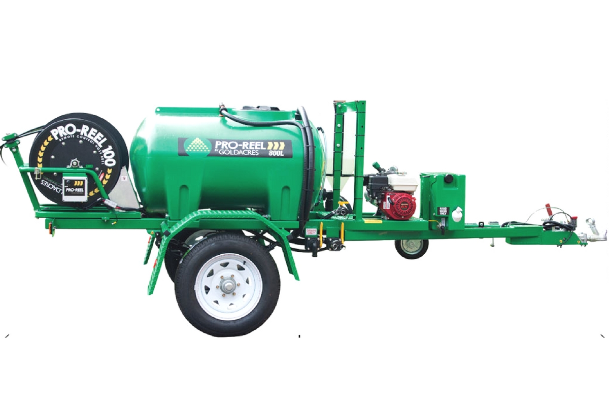 Weight balance has been carefully considered with the single axle allowing a very smooth trailer ride with the tank full or empty. The Pro-Reel® trailer comes in tank sizes 800 or 1000L and can be fitted with either single or twin auto re-wind Pro-Reel® in sizes 50, 100 or 150 metres in length along with the trusty Turbo 400 spray gun.